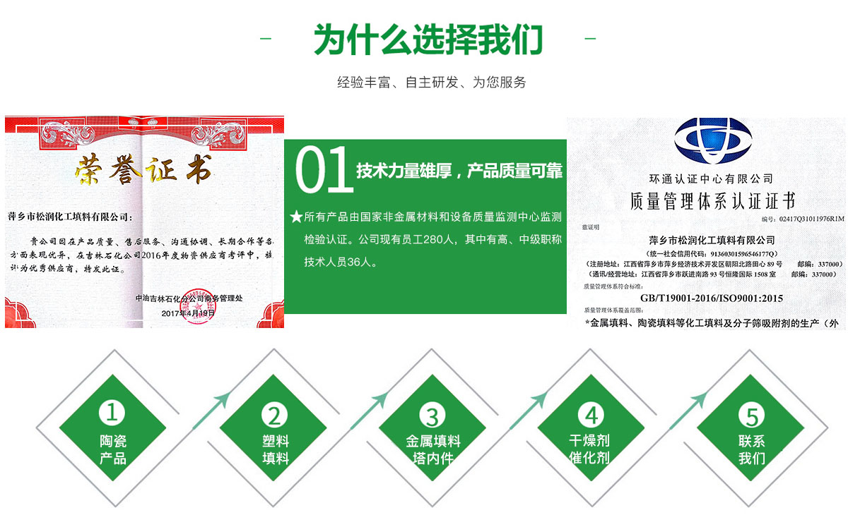 萍鄉(xiāng)市松潤化工填料有限公司位于江西省萍鄉(xiāng)市國家經(jīng)濟開發(fā)區(qū)西區(qū),是專業(yè)生產(chǎn)、經(jīng)營陶瓷、聚丙烯、金屬填料、塔內(nèi)件、水處理濾板、濾管、濾料、瓷球、分子篩、催化劑、活性炭、蜂窩陶瓷、瓷質(zhì)耐磨托輥等系列產(chǎn)品的民營企業(yè)。所有產(chǎn)品由國家非金屬材料和設(shè)備質(zhì)量監(jiān)測中心監(jiān)測檢驗認證。公司現(xiàn)有員工280人,其中有高、中級職稱技術(shù)人員36人。工藝先進,技術(shù)力量雄厚,產(chǎn)品質(zhì)量可靠,配...